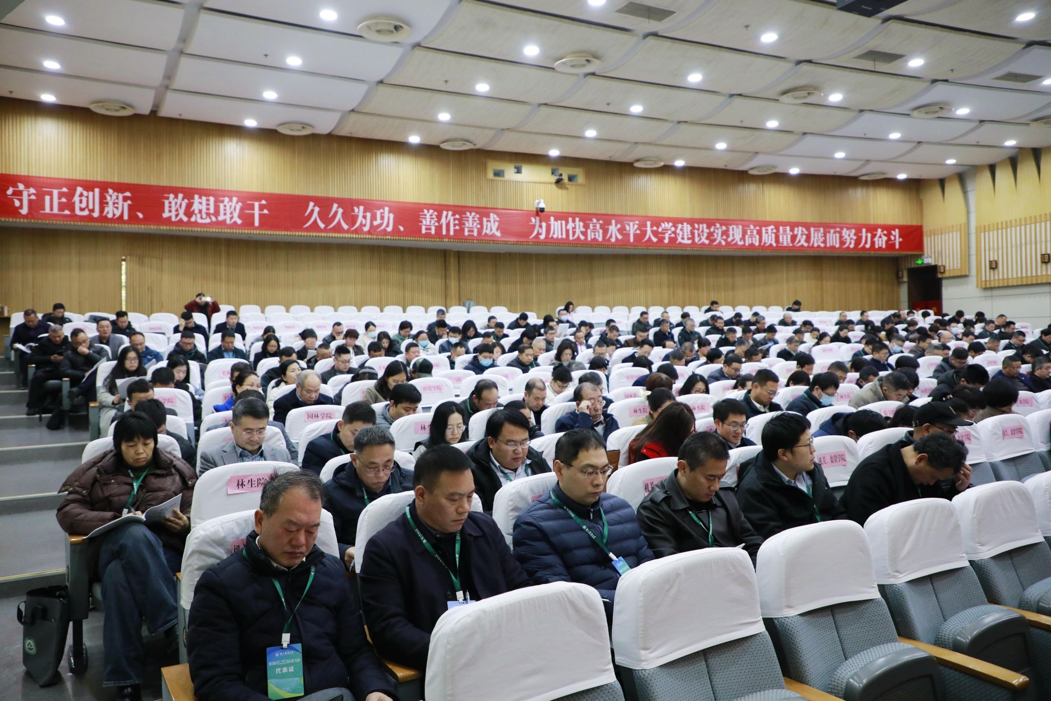 報告強調(diào),2025年學(xué)校將著力推進八個方面的重點工作:一是加強黨的全面領(lǐng)導(dǎo)。籌備召開學(xué)校第四次黨代會,推動黨建工作高質(zhì)量發(fā)展,加強師生思想政治工作,凝聚統(tǒng)戰(zhàn)群團奮進力量,縱深推進全面從嚴治黨。二是全面提高人才培養(yǎng)質(zhì)量。做好審核評估整改工作,加強標志性成果培育,深化專業(yè)內(nèi)涵建設(shè),推進一流教學(xué)資源建設(shè),強化研究生人才培養(yǎng),提升招生就業(yè)質(zhì)量,促進學(xué)生全面發(fā)展,提升暨陽學(xué)院辦學(xué)內(nèi)涵。三是聚力推進高水平大學(xué)建設(shè)。全力推進林學(xué)登峰學(xué)科建設(shè),科學(xué)謀劃“十五五”發(fā)展戰(zhàn)略,全面推進新一輪學(xué)科評估。四是加快推動一流師資隊伍建設(shè)。強化人才引育并舉,探索人才交流機制,優(yōu)化人才發(fā)展環(huán)境。五是切實增強科技創(chuàng)新能力。推動有組織科研效能彰顯,優(yōu)化高能級科研平臺布局,增強標志性科研成果產(chǎn)出。六是著力深化國際交流合作。完善國際化人才培養(yǎng)體系,擴大國際交流合作“朋友圈”。七是持續(xù)提升社會服務(wù)水平。助力鄉(xiāng)村全面振興,推動科技成果轉(zhuǎn)化,全力推進區(qū)校合作。八是不斷優(yōu)化治理服務(wù)體系。提升內(nèi)部治理效能,實施基礎(chǔ)設(shè)施提質(zhì)工程,拓展盤活辦學(xué)資源,維護校園安全穩(wěn)定,提高公共服務(wù)保障水平,推進“幸福農(nóng)林”建設(shè)。
