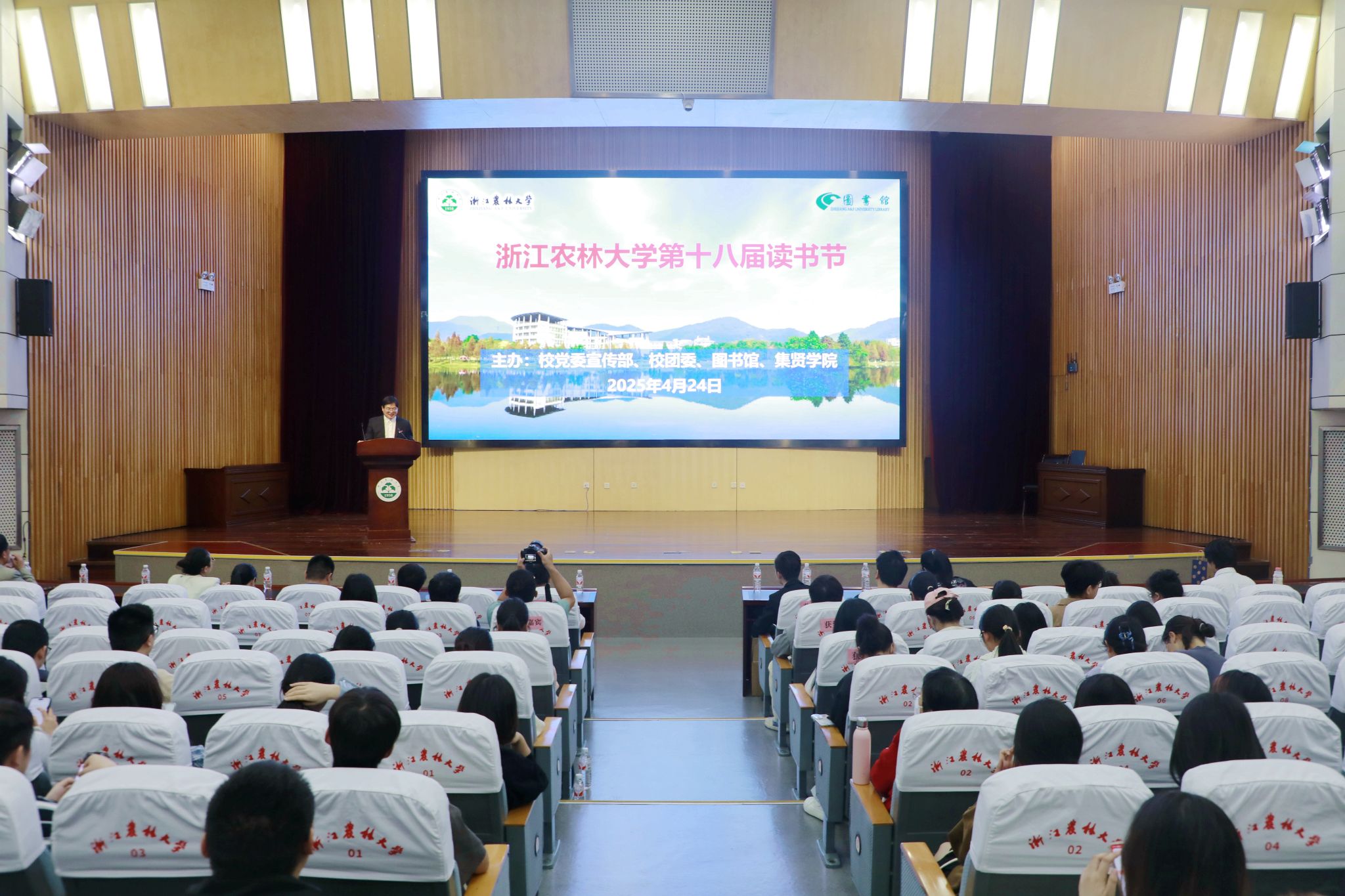 徐愛俊在致辭中指出,舉辦讀書節(jié)既是對(duì)習(xí)近平總書記“愛讀書、讀好書、善讀書”全民閱讀指示的積極響應(yīng),也是落實(shí)《教育強(qiáng)國建設(shè)規(guī)劃綱要》的具體實(shí)踐。面對(duì)人工智能重塑認(rèn)知邊界、信息碎片化浪潮的時(shí)代挑戰(zhàn),閱讀應(yīng)成為青年學(xué)子“錨定精神的燈塔”,徐愛俊鼓勵(lì)師生做“挑剔的讀者”“‘野蠻’的思考者”“開放的對(duì)話者”,在經(jīng)典閱讀中筑牢信仰根基,在科學(xué)閱讀中鍛造創(chuàng)新之翼,在時(shí)代閱讀中砥礪擔(dān)當(dāng)之志。他特別寄語青年學(xué)子將閱讀與實(shí)踐結(jié)合,在鄉(xiāng)村振興、城市更新項(xiàng)目中踐行“讀書報(bào)國、強(qiáng)農(nóng)興農(nóng)”的使命擔(dān)當(dāng)。