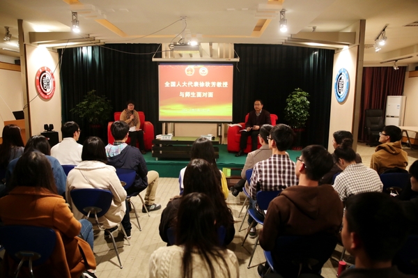3月21日晚,全國人大代表、我校環資學院徐秋芳教授與師生面對面,傳達2016全國“兩會”精神。本次交流會由校黨委委員、宣傳部部長胡祖吉主持,