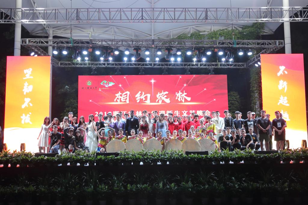 典禮結束后,全體新生觀看了迎新晚會,豐富多彩的節目展現了我校大學生的青春風采,展示了“求真 敬業”的校訓和“堅韌不拔 不斷超越”的學校精神,演繹了“攜手再超越,共筑農林夢”的校慶主題,增強新生的歸屬感、責任感和使命感,晚會在齊唱《浙江農林大學校歌》的歌聲中完滿閉幕。