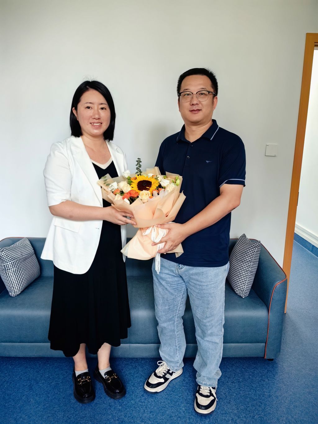 9月8日,在動科動醫學院新教師入職儀式上,校黨委委員、學院院長宋厚輝,學院黨委書記魏玲玲為14位新進教師佩戴院徽、贈送鮮花。學院黨政班子成員、高層次人才、學科專業負責人、新生班主任、新進教師、2024級全體新生參加。
