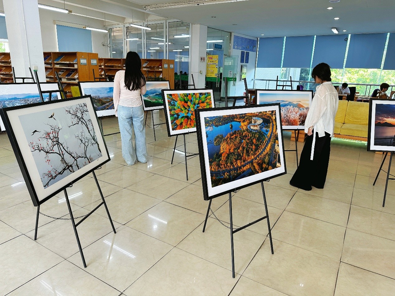 此次展覽匯集了臨安區(qū)攝影家協(xié)會的十余位攝影師的三十余幅作品,以光影為筆,勾勒出臨安的山水與人文之美,讓美在鏡頭中“顯影”。作品聚焦臨安的山水風光、城鄉(xiāng)風貌以及鄉(xiāng)村振興成果。其中有關(guān)我校的幾組作品引得師生駐足欣賞,大家紛紛表示,相比文字記錄的抽象性、視頻記錄的瞬時性,攝影所鐫刻的學校之美,令人贊嘆。