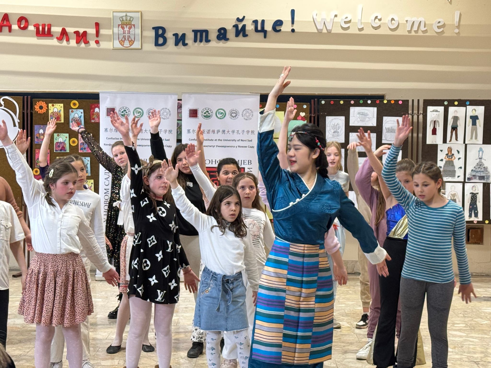 當地時間4月3日,諾維薩德大學孔子學院在教學點佩特羅·庫茨米亞克學校(Petro Kuzmjak School)舉辦了一場精彩紛呈的中塞舞蹈交流活動。諾大孔院外方院長伊萬娜·捷萬契維奇·塞凱露絲(Ivana ?ivan?evi? Sekeru?)教授,中方院長陳秀教授,以及該校校長娜塔莉亞(Natalia Budinski)出席。近兩百名學生參加了此次舞蹈交流活動。