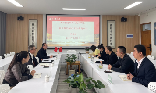 4月10日上午,杭州國際旅行衛生保健中心負責人陳明環一行四人來校交流國際生檢疫工作。國教學院院長趙有華等相關領導以及相關工作人員參加座談。