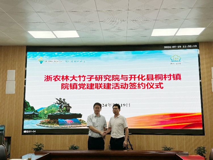 座談會上,竹研院黨總支與桐村鎮黨委簽訂黨建聯建協議,雙方一致認為,要加強黨建引領,提升雙方合作的組織化水平,開展組織共建、技術共研、人才共育,推進院鎮合作再上新臺階。雙方回顧了一年多來的合作情況及成效,并就下一步擬開展合作事宜進行了研討。