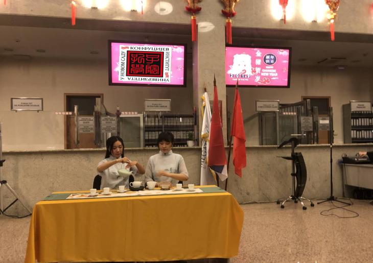 中國駐塞爾維亞大使館政務參贊慈永輝、武館吳永杰、俄羅斯駐塞爾維亞大使館參贊亞歷山大?茲諾文克夫(AleksandarZinovenkov)、梅加特倫德大學副校長米奧德拉格?耶夫提齊(Miodrag Jevtic)、諾大孔院中方院長陳晦、伊朗駐塞爾維亞大使館代表,梅加特倫德大學師生,駐塞中資機構代表以及當地民眾等近二百人歡聚一堂,共慶佳節。